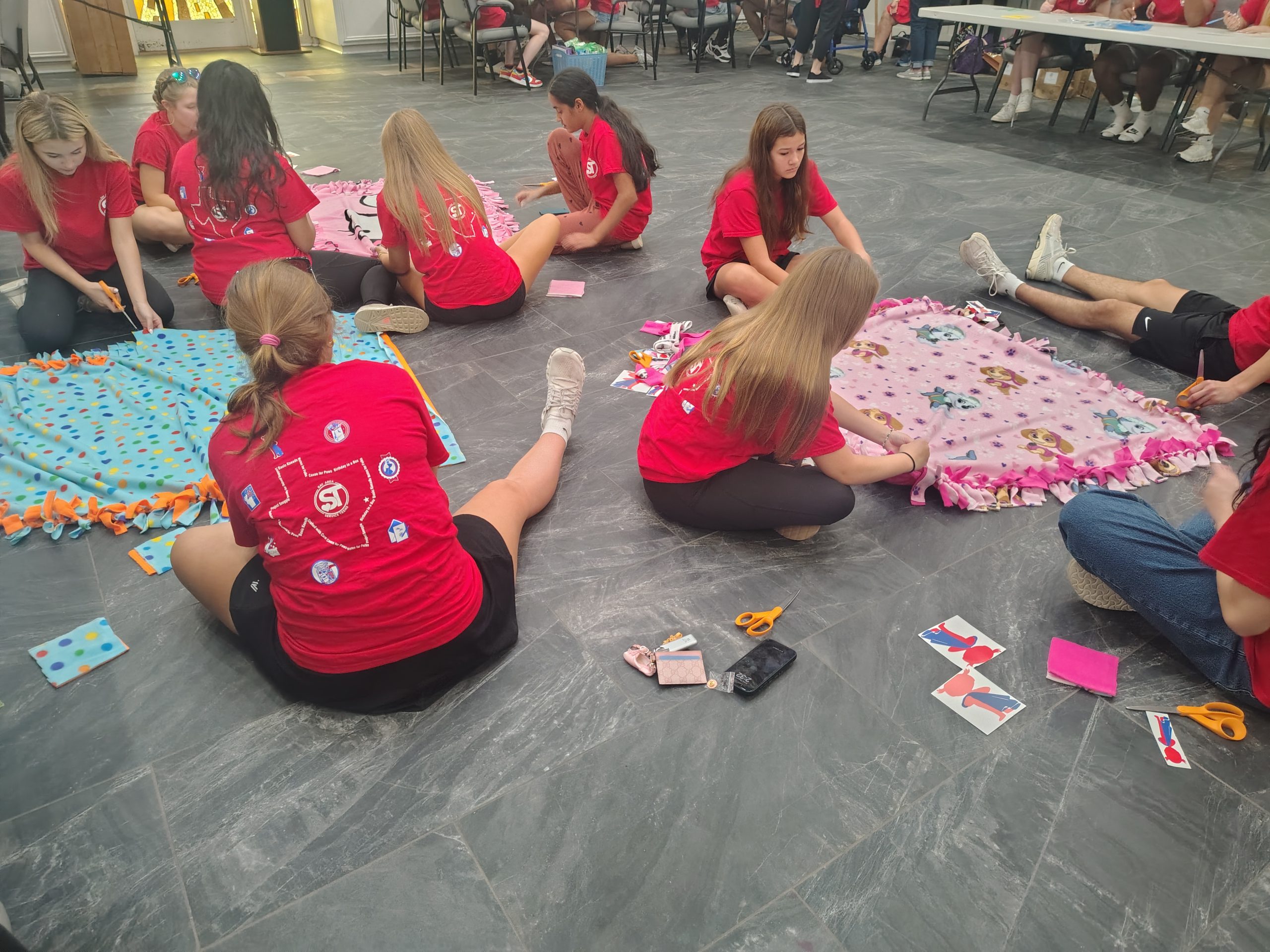 After each membership meeting, the teens come together to create soft, cuddly blankets that offer warmth and security to young ones who often arrive with little more than the clothes on their backs.