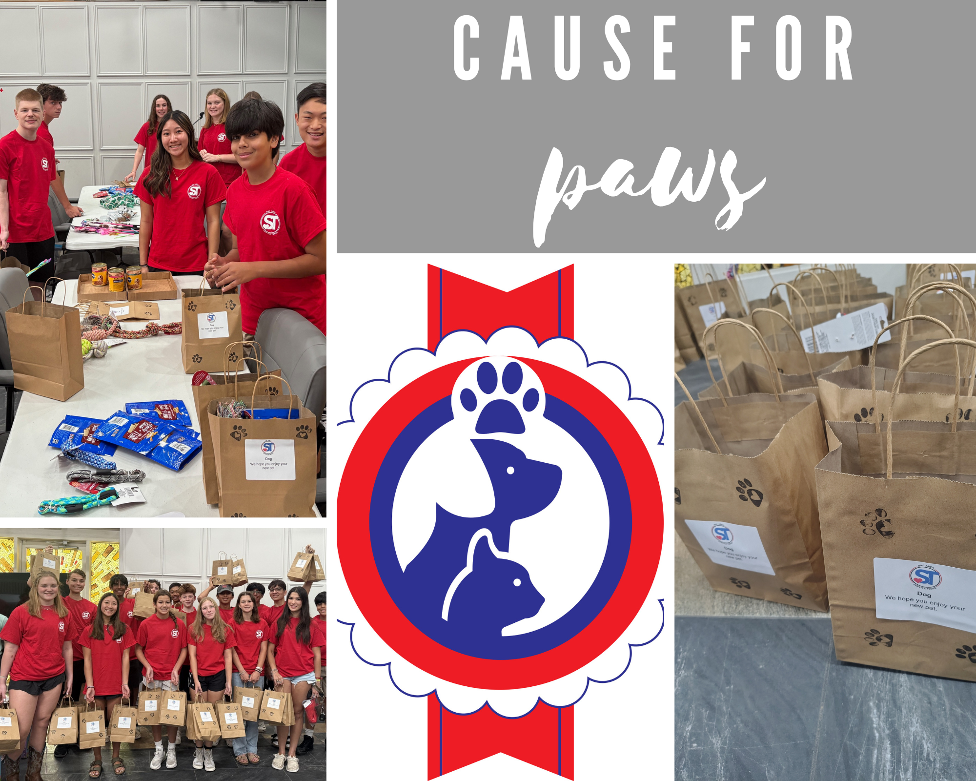 In Fall 2014, Bay Area Service Teens saw a need to help families seeking companion animals. They established the Cause for Paws philanthropic program, which assembled pet adoption kits and delivered them to the League City Animal Care shelter.